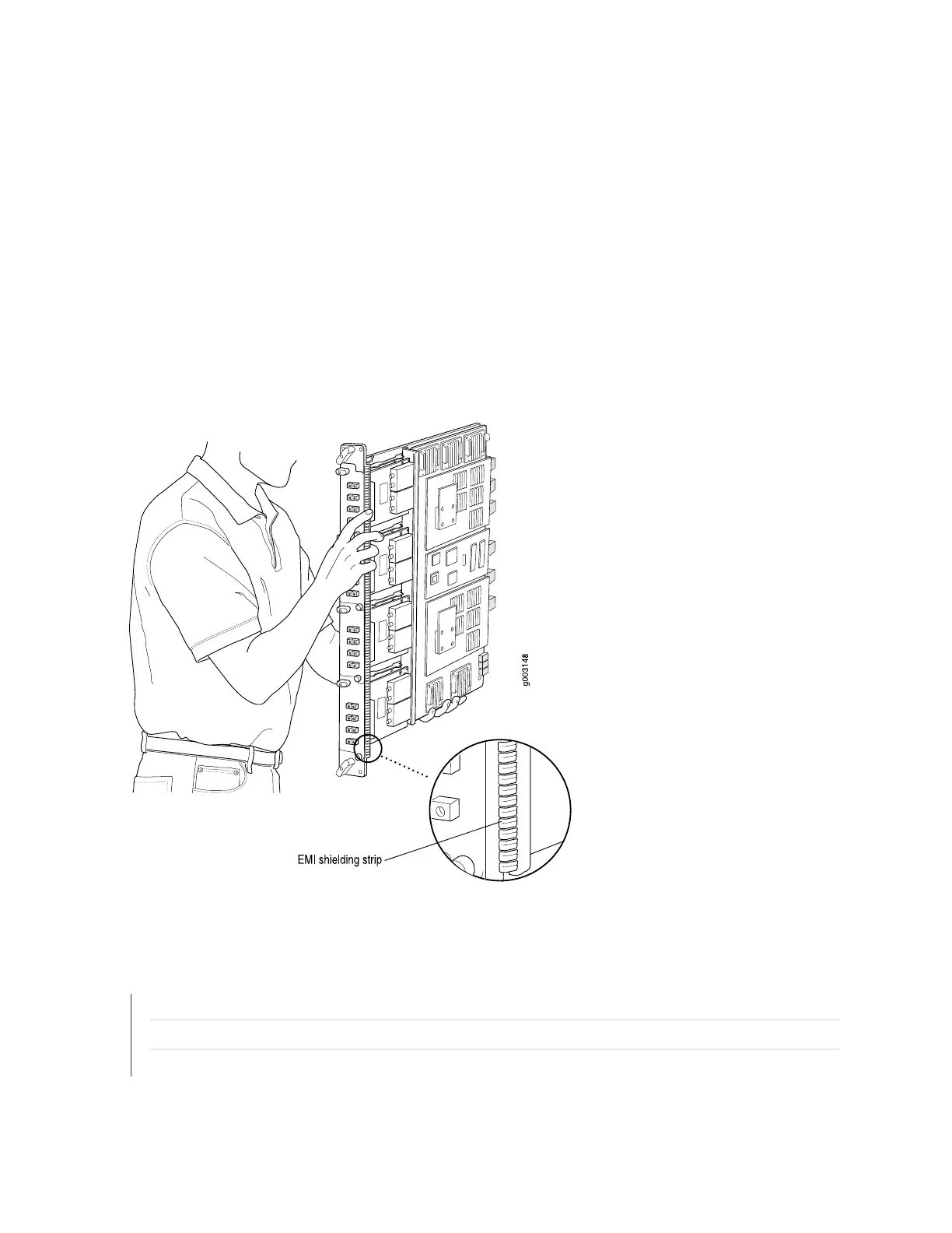 deforming the electromagnetic interference (EMI) shielding strip, do not press hard on it.