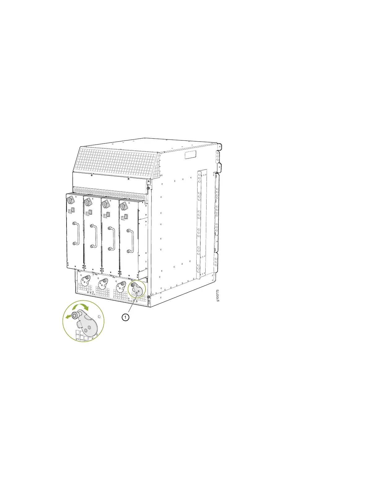 2. Ensure that the release lever below the empty power supply slot is locked in the counterclockwise