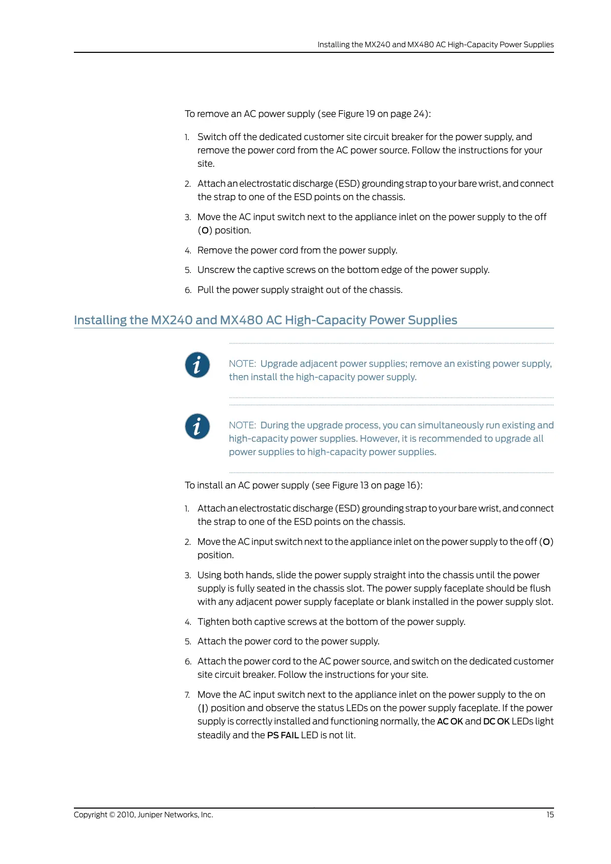 Installing the MX240 and MX480 AC High-Capacity Power Supplies