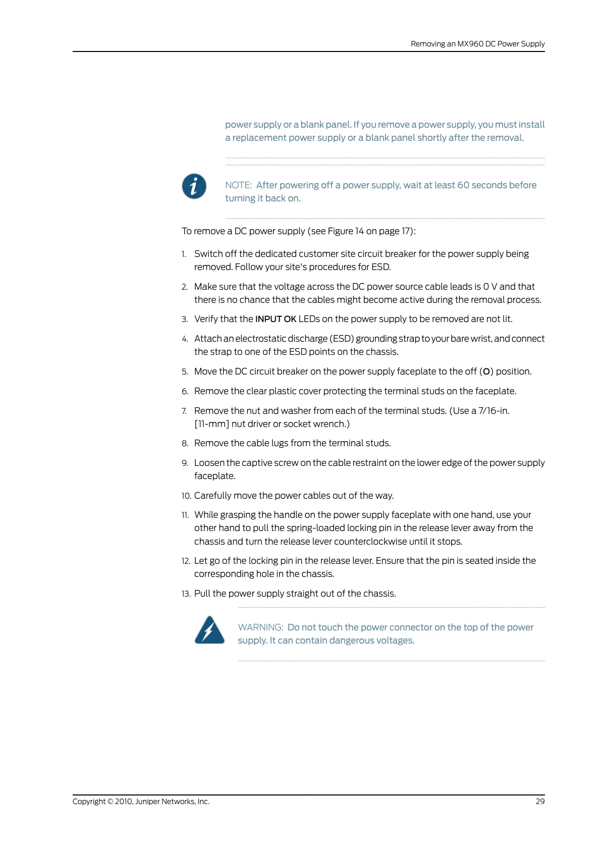 NOTE: After powering off a power supply, wait at least 60 seconds before