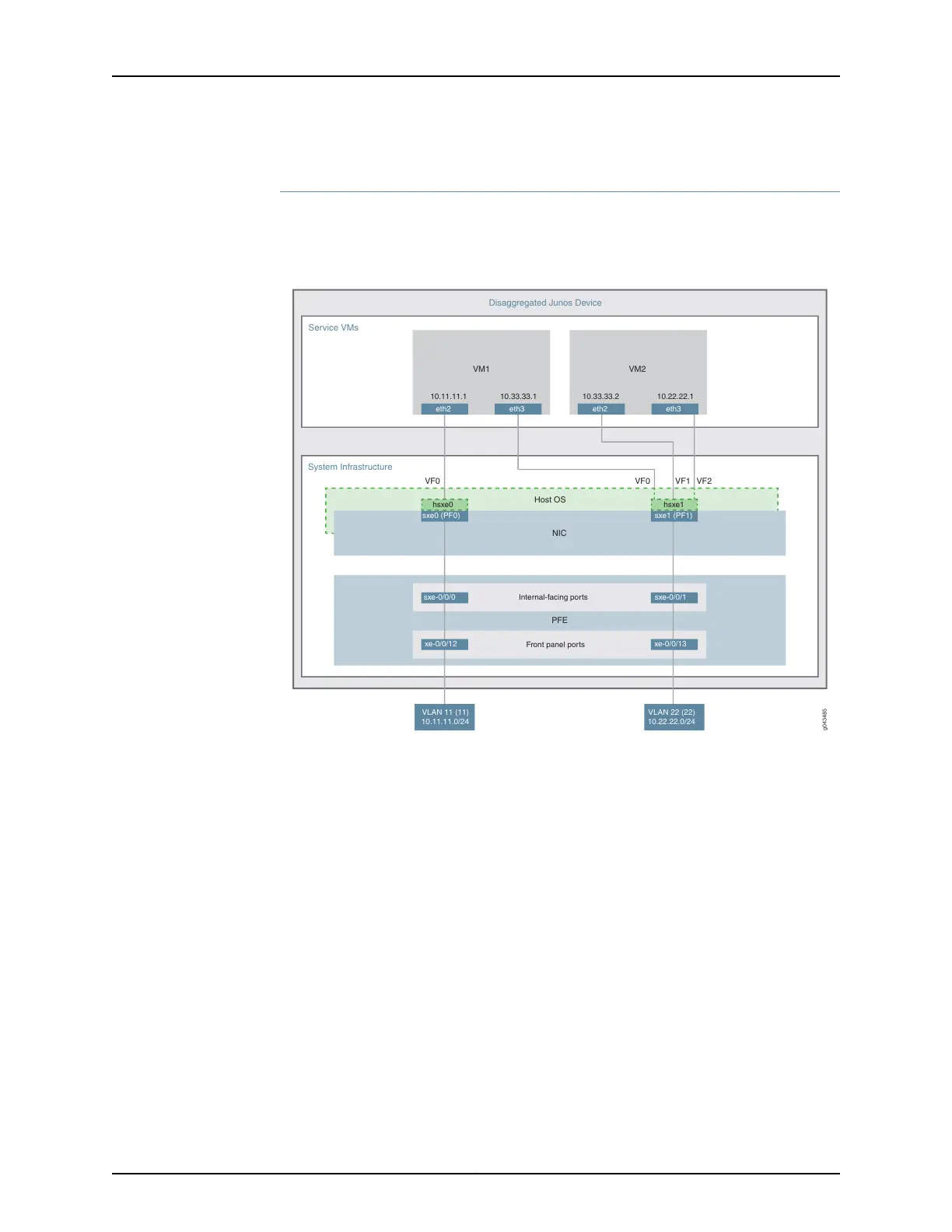 host OS layer and configured as interfaces hsxe0 and hsxe1. The VMs use two interfaces