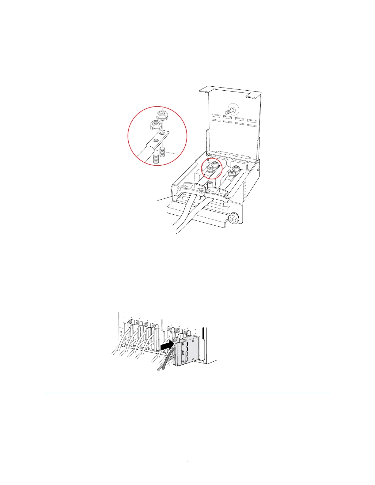 8. Verify that the source power cables are connected to the appropriate terminal: the