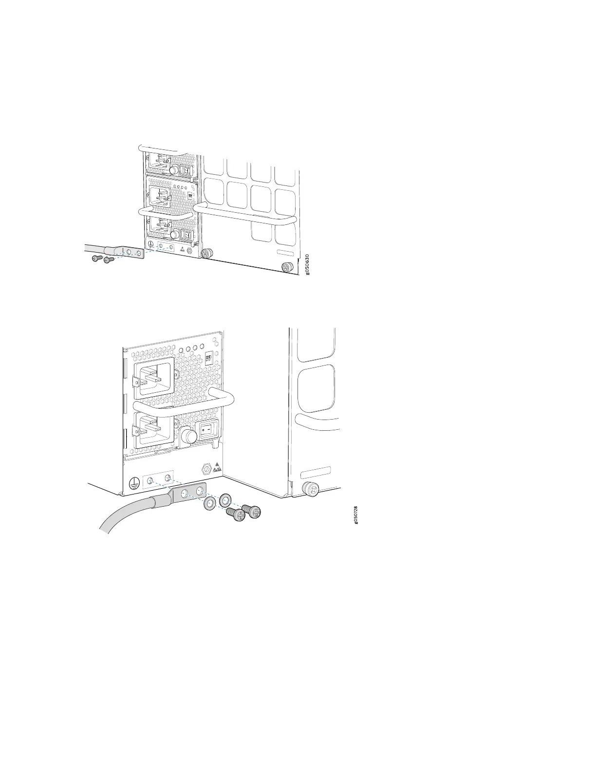 6. Place the two screws over the grounding lug and grounding cable.