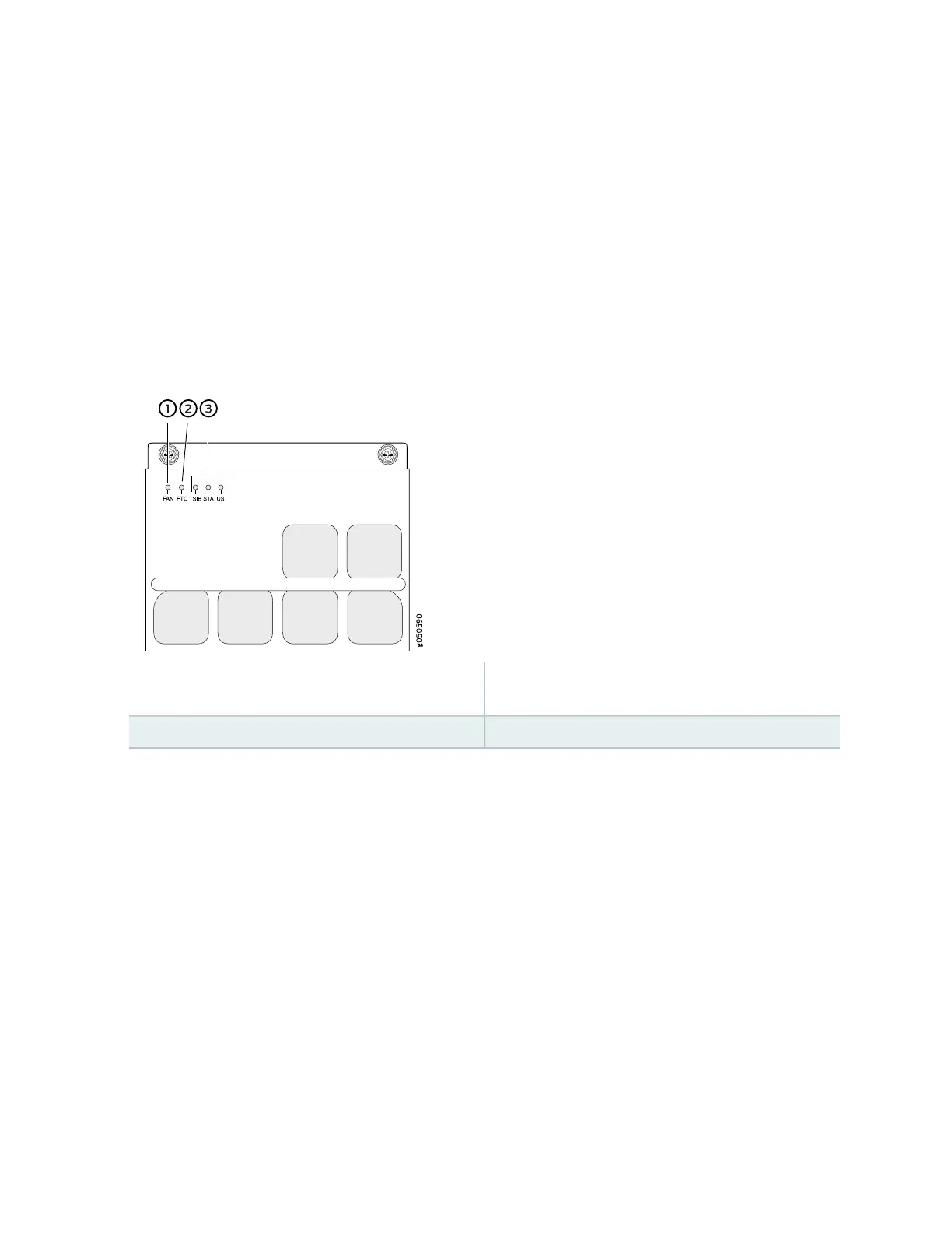 controller, and the three Switch Interface Boards (SIBs). The fan tray LEDs are located in the top left corner