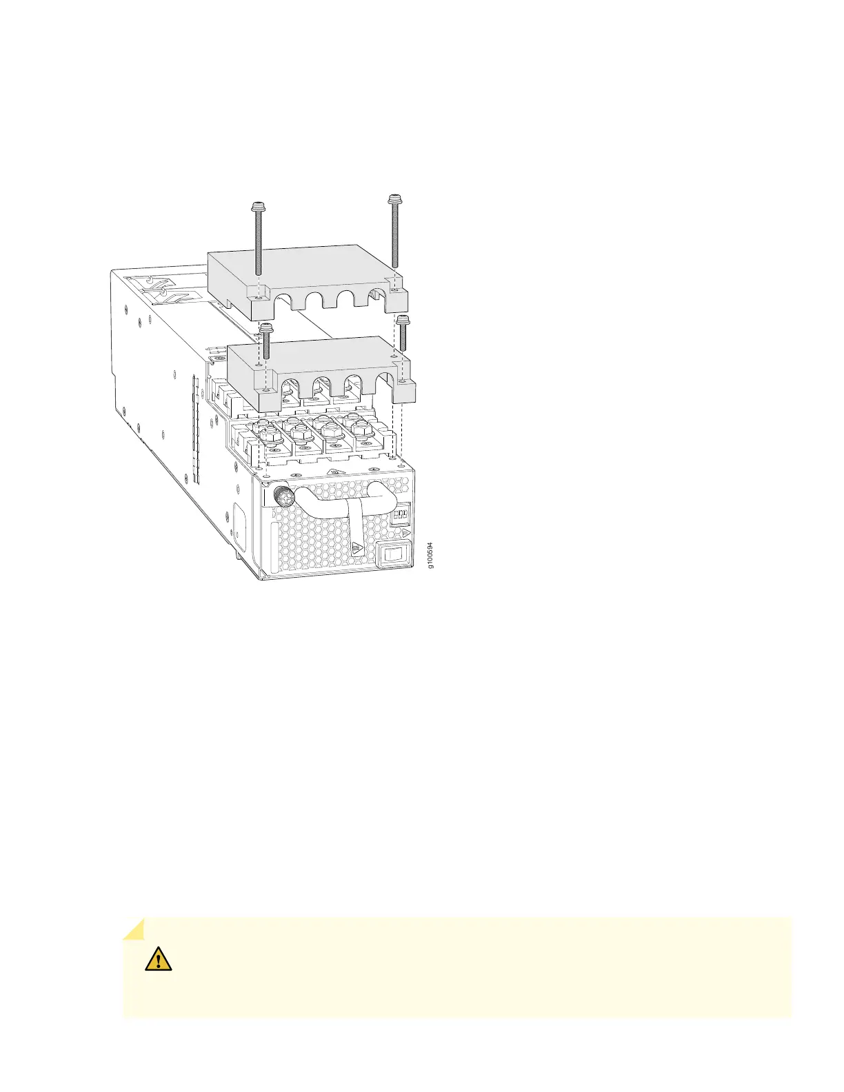 Figure 33: Removing the Plastic Cable Cover on a JNP10K-PWR-DC2 Power Supply