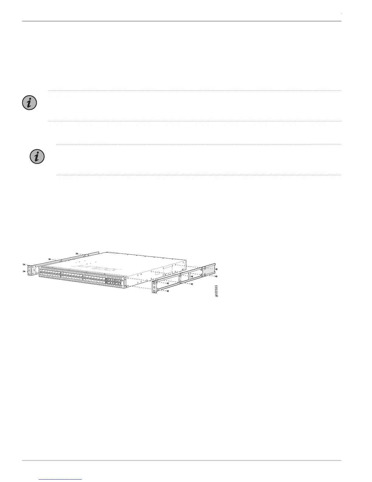 You can mount a QFX5120 switch on four posts of a 19-in. rack or an ETSI rack. This guide describes the procedure to mount the
