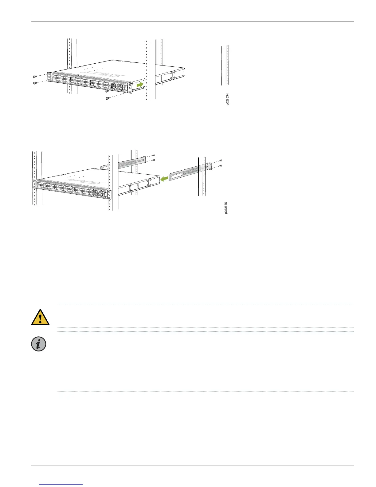8. On the rear of the switch chassis, slide the rear-mounting brackets into the front-mounting brackets on either side of the