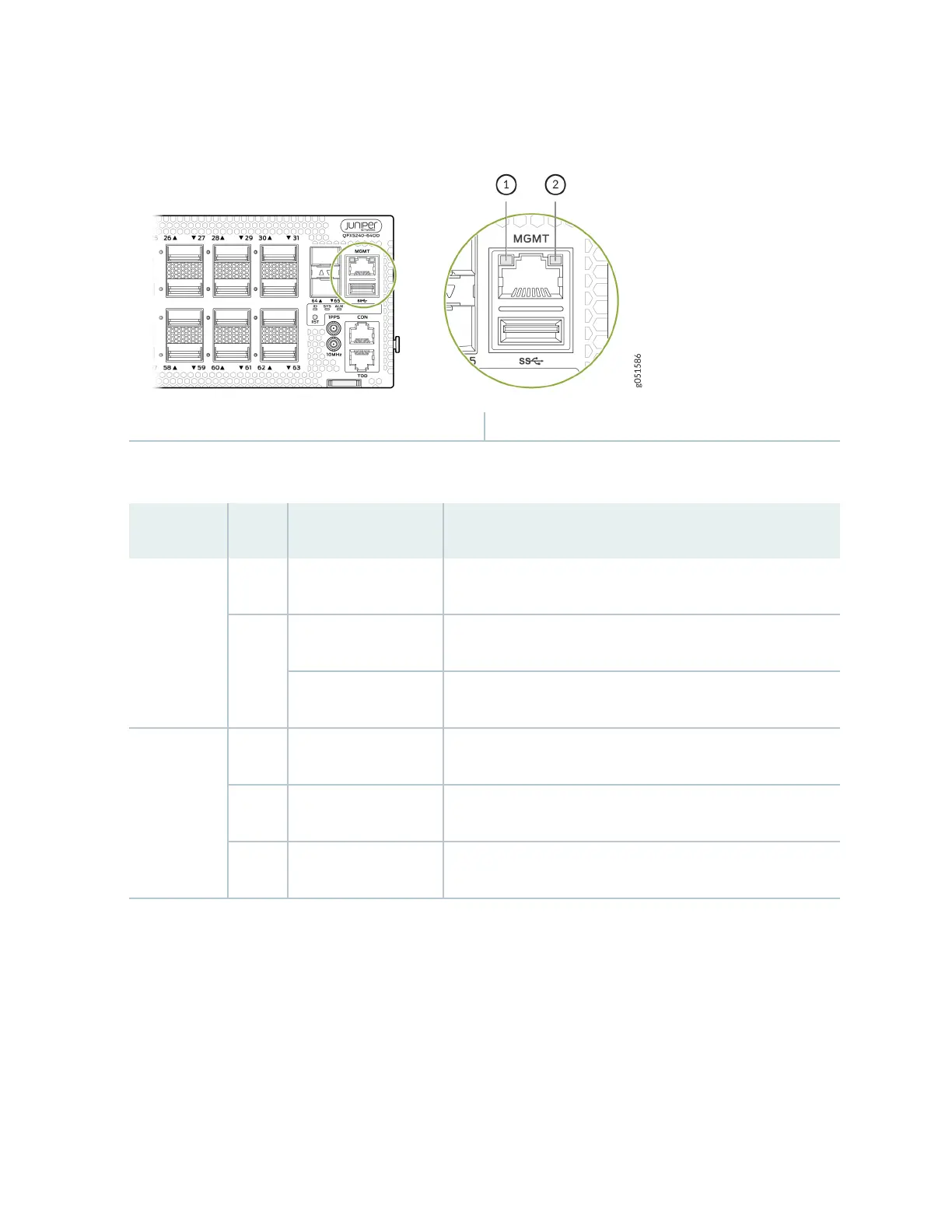 Table 8 on page 27 shows the management port LEDs on a QFX5240 switch.