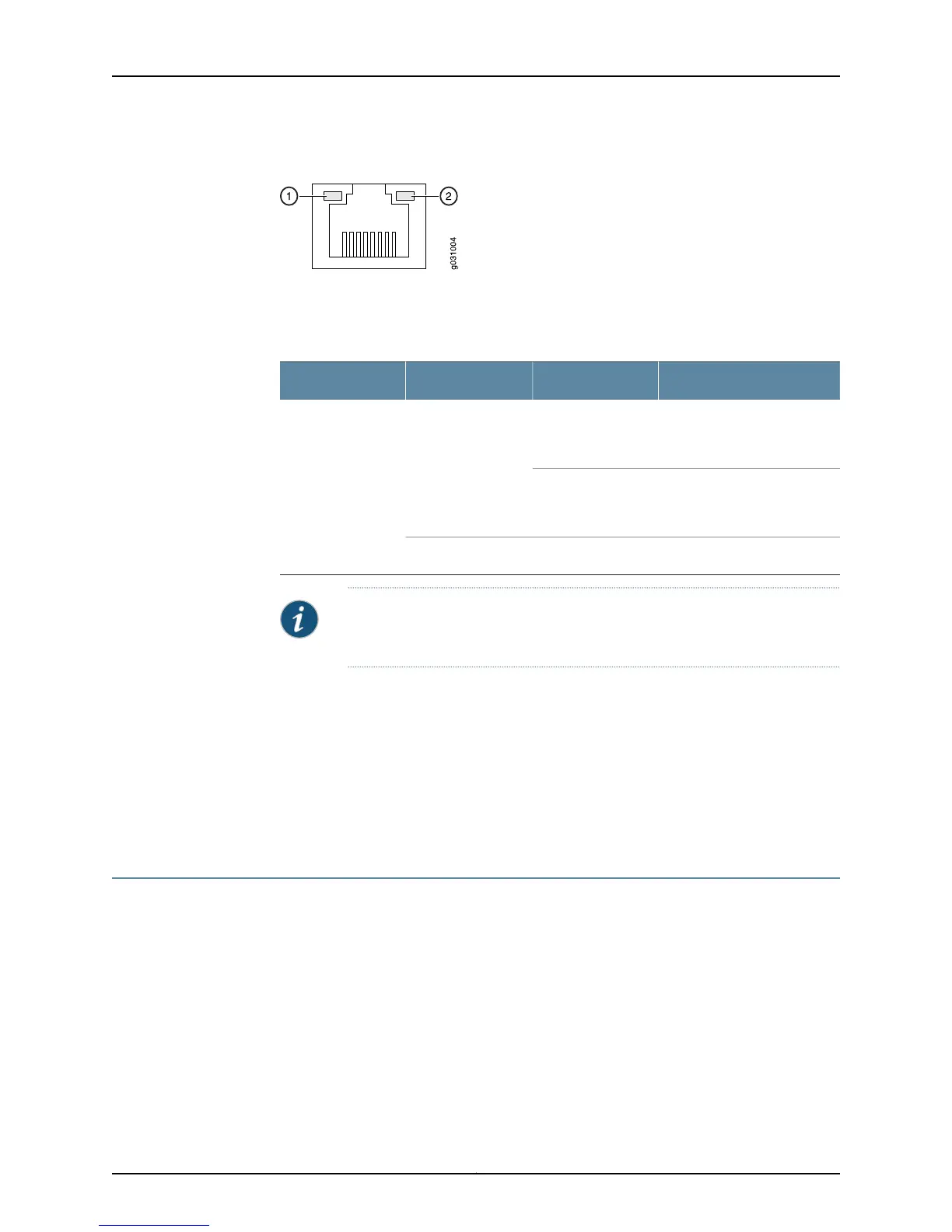 Table 6: SRX100 Services Gateway Built-In Ethernet Port LEDs