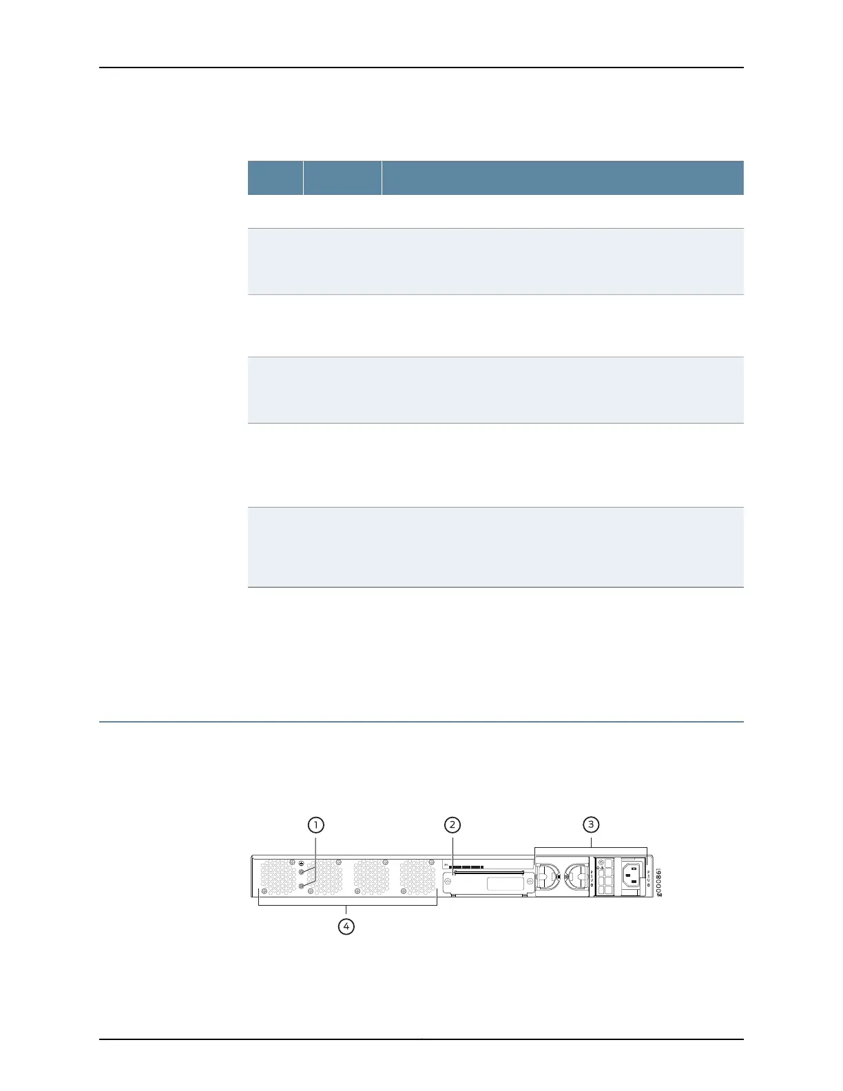 Figure 3 on page 8 shows the back panel of the SRX1500 Services Gateway and