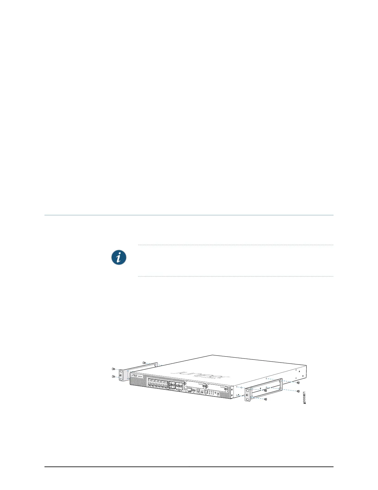 You can front-mount the SRX1500 Services Gateway in a rack. Many types of racks are