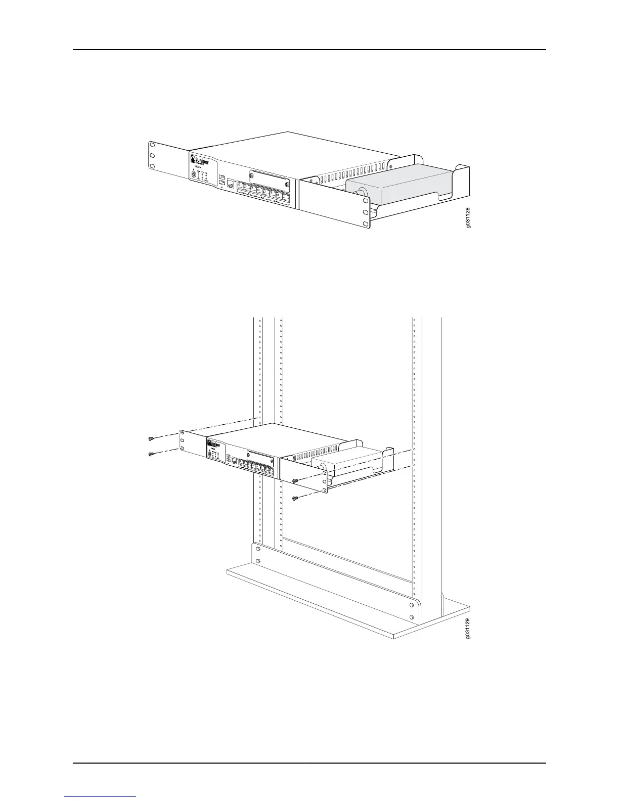 Figure 20: SRX210 Services Gateway Rack Installation — Hanging the