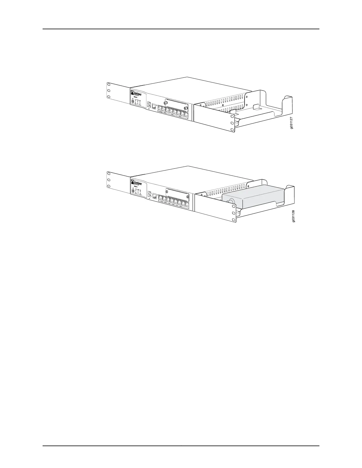 Figure 18: SRX210 Services Gateway Rack Installation — Positioning the