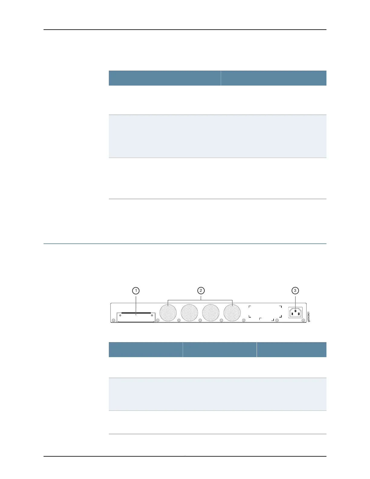 Figure 3 on page 8 shows the back panel of the SRX340 Services Gateway and