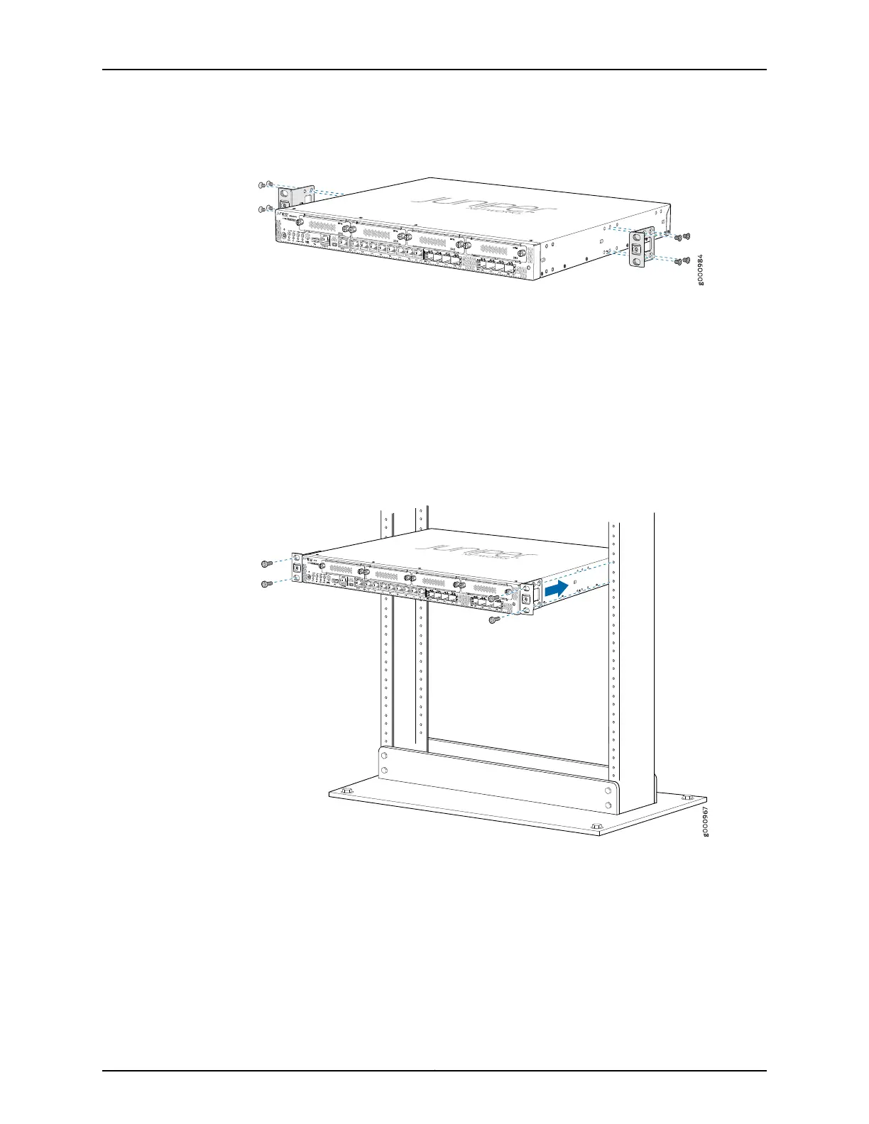 6. Install the second screw in each mounting bracket as shown in Figure 8 on page 52.