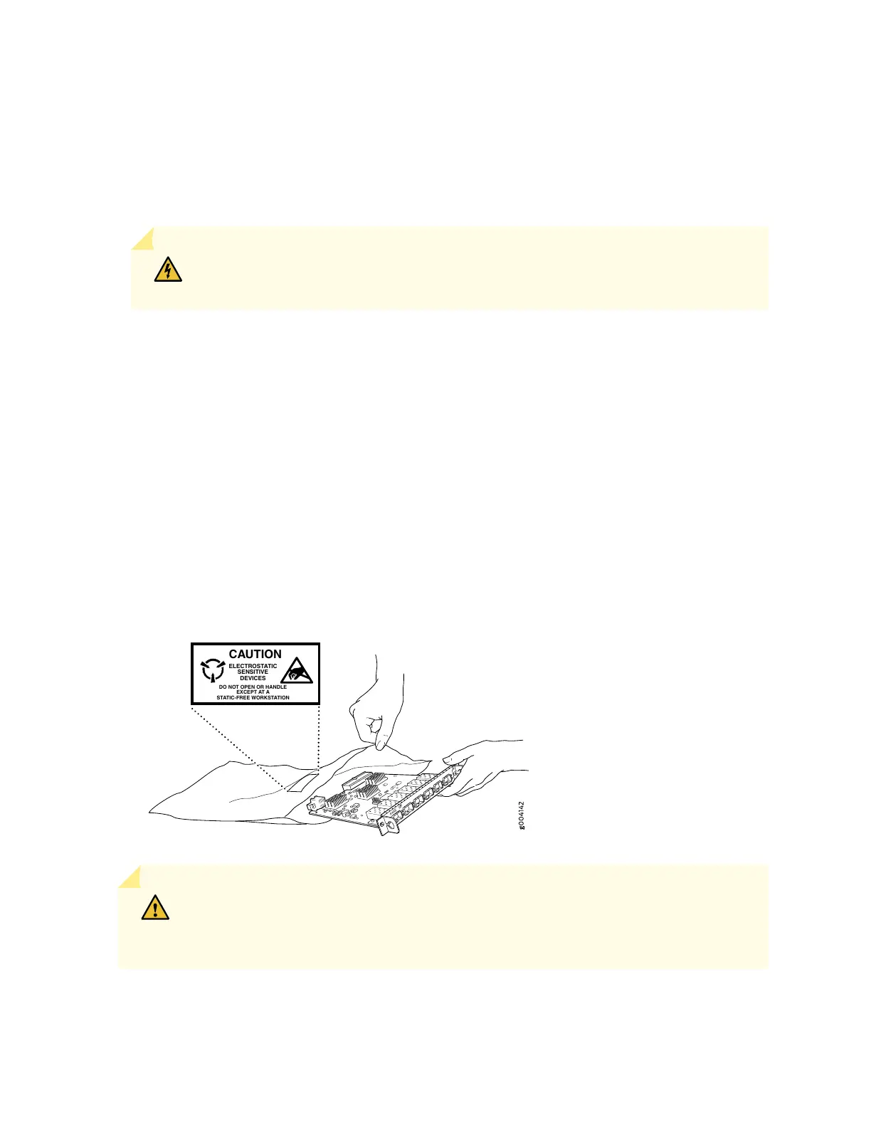 up on an antistatic surface, in an antistatic card rack, or in an antistatic bag (see Figure 90 on page 287).