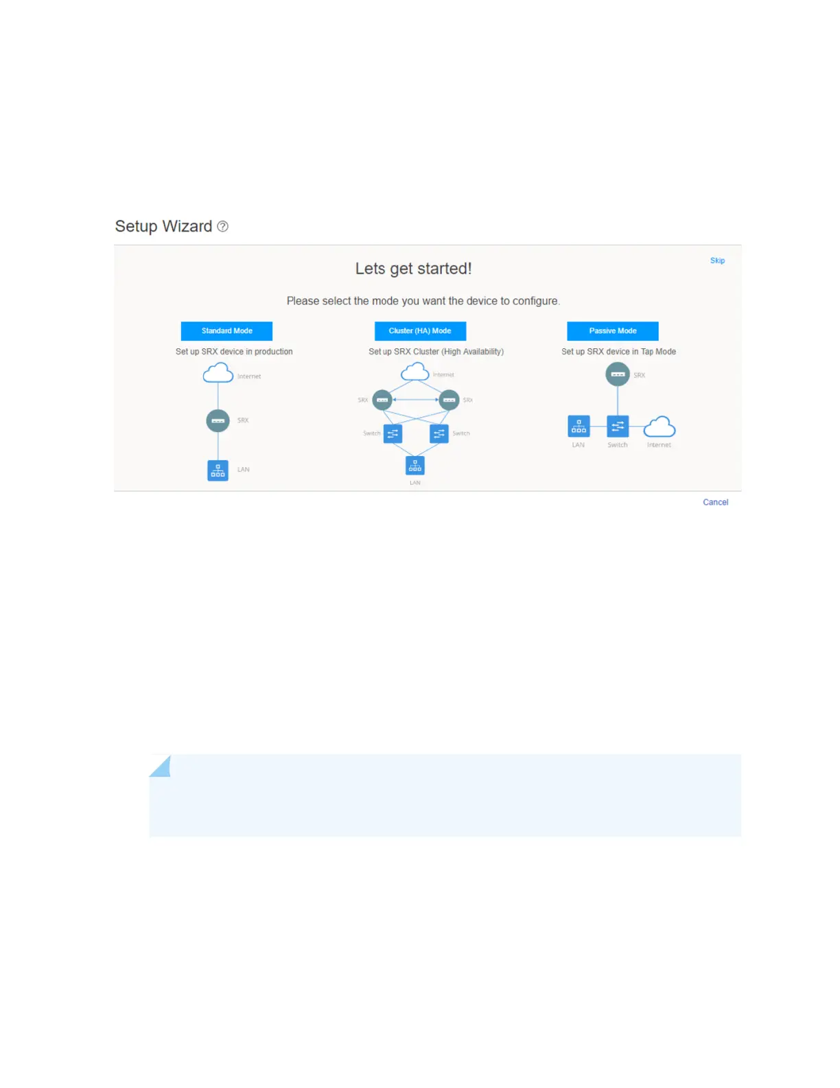 1. In the J-Web application, select Configure > Setup Wizard. The Setup wizard opens on your screen.