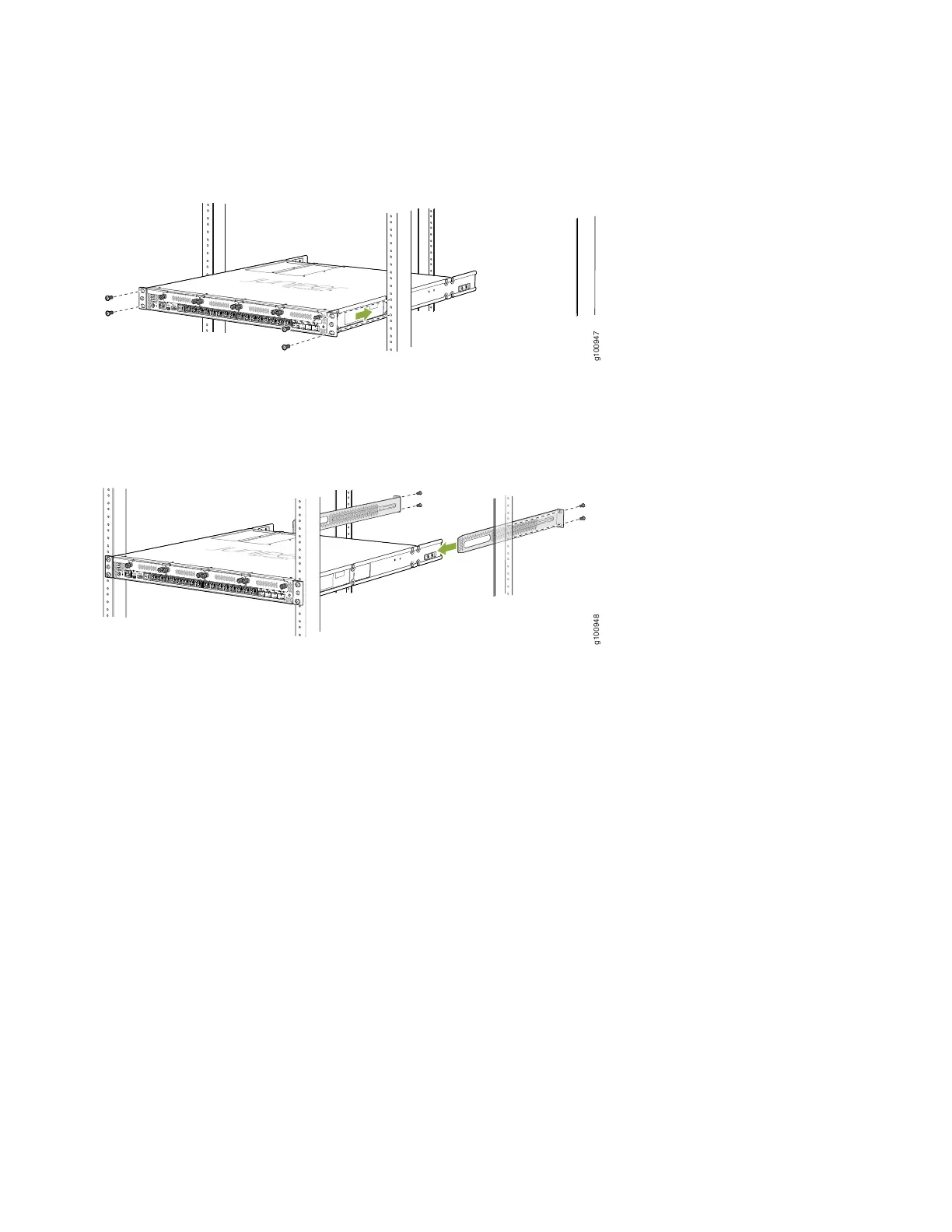 6. Check that the mounting brackets on each side of the rack are lined up with each other.