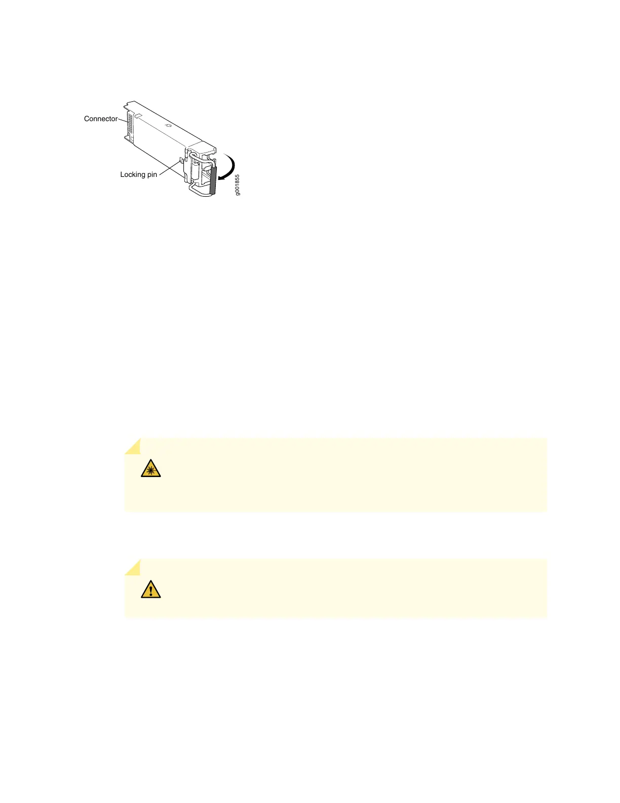 4. Remove the cable connector from the transceiver. Immediately cover the transceiver and the end of