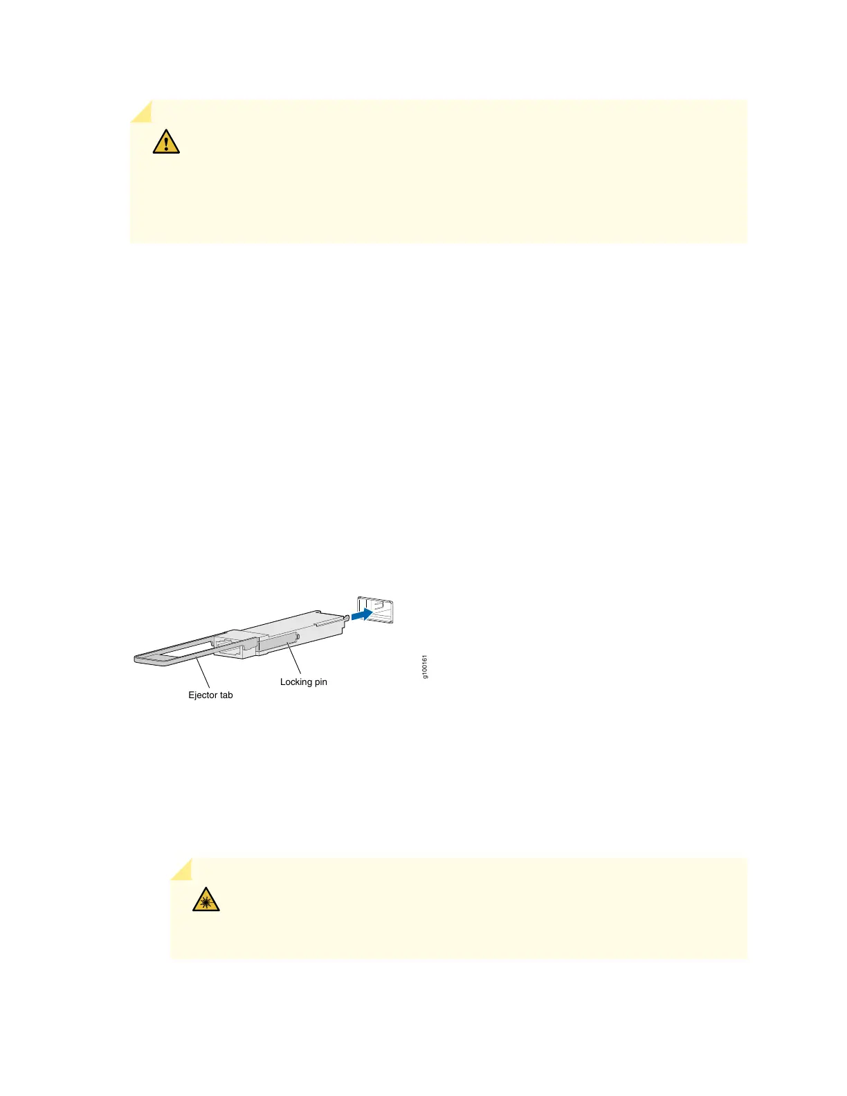 To install a QSFP28 transceiver (see Figure 45 on page 122):