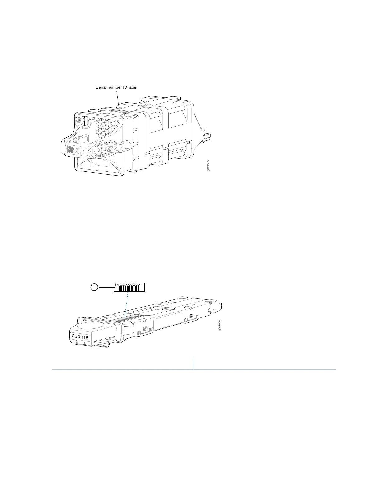 The two SSDs installed in the SRX4600 Services Gateway are field-replaceable unit (FRUs). For each FRU,