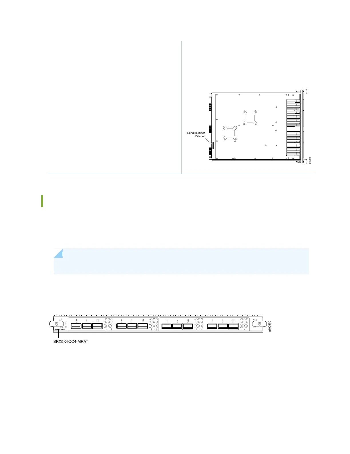 NOTE: SRX5K-IOC4-MRAT cards do not support plug-in Modular Interface Cards (MICs).