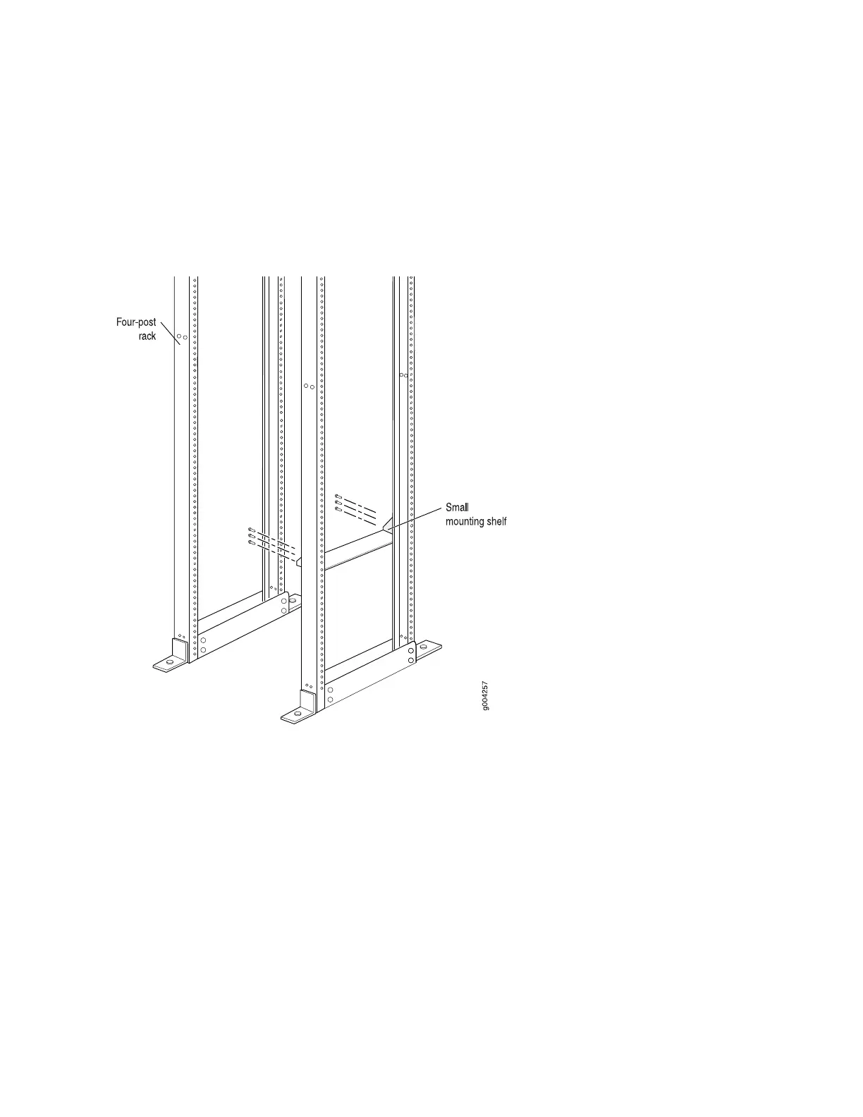 4. Partially insert the remaining screws into the open holes in each flange of the mounting shelf.