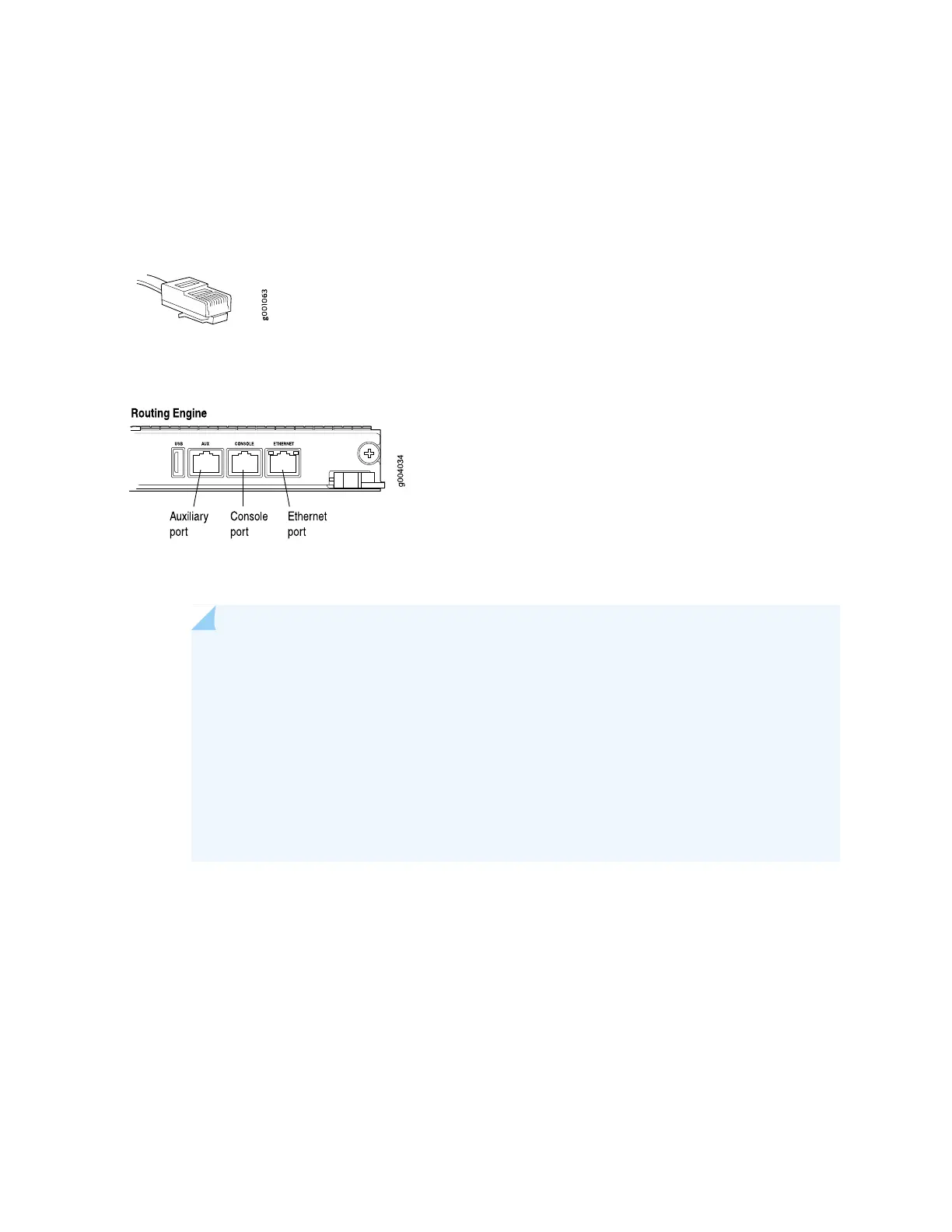 or CONSOLE port on the Routing Engine. Figure 82 on page 194 shows the ports.
