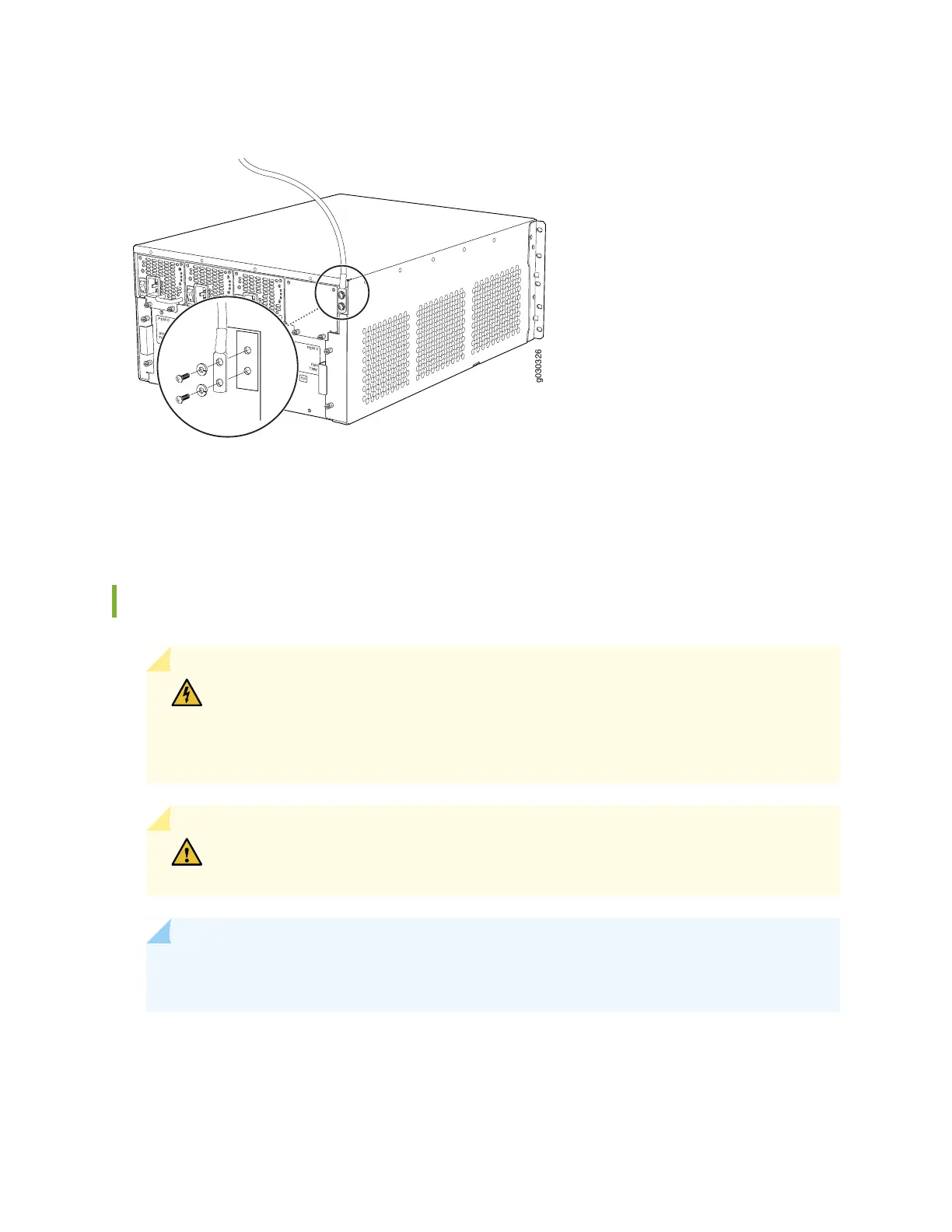 before connecting power. See “Grounding the SRX5400 Services Gateway” on page 199