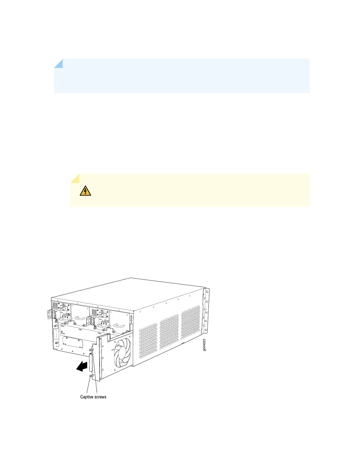 5. Place one hand under the fan tray to support it and pull the fan tray completely out of the chassis.