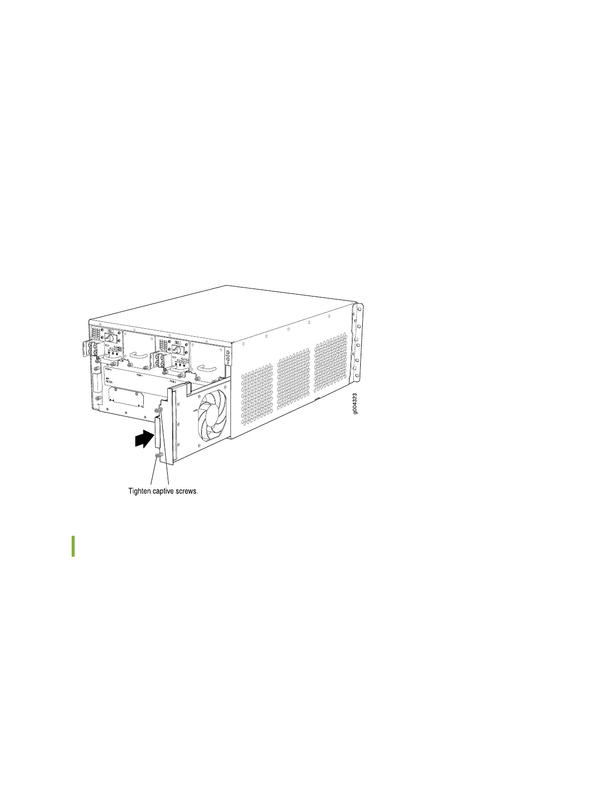 3. Tighten the captive screws on the fan tray faceplate to secure it in the chassis.