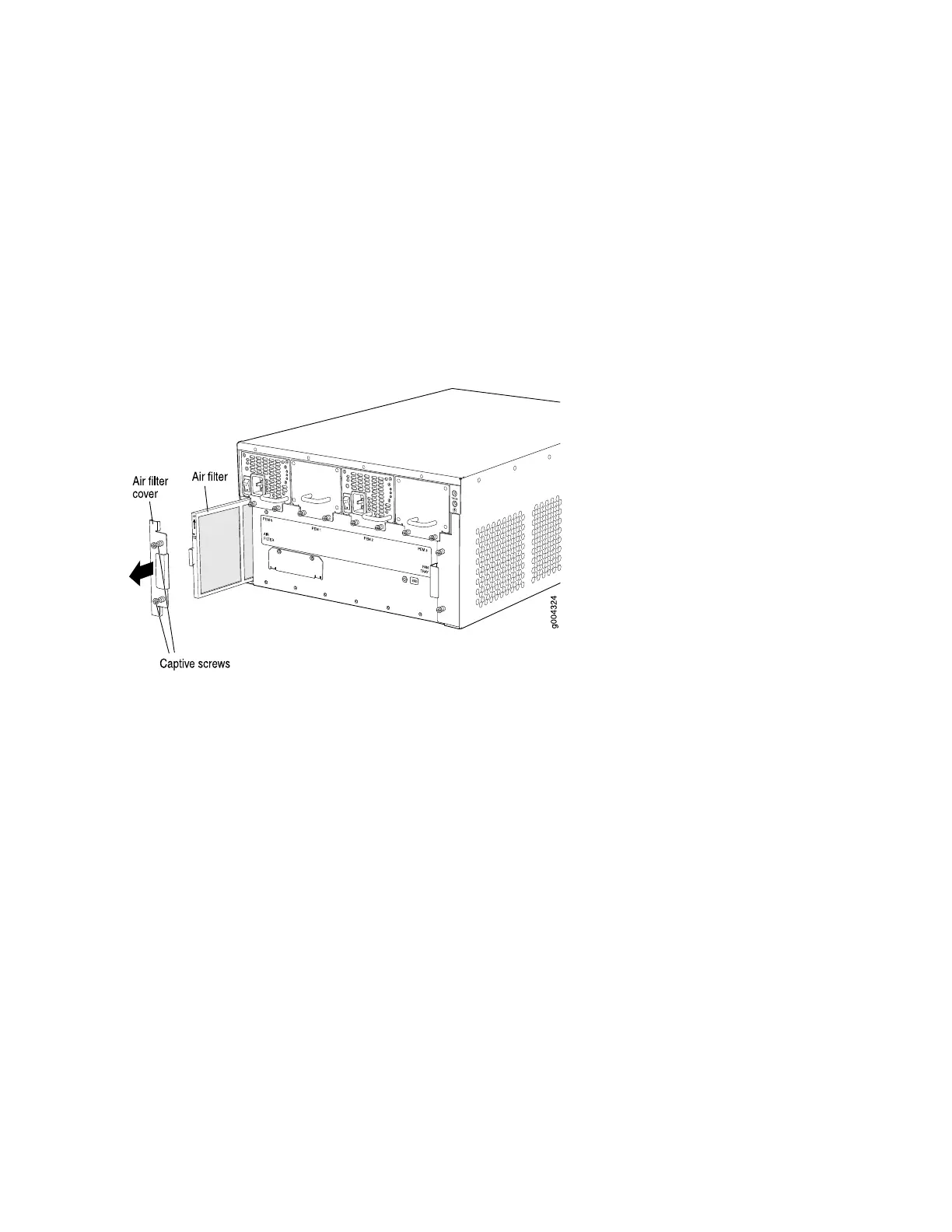 4. Align the captive screws of the air filter cover with the mounting holes on the chassis.
