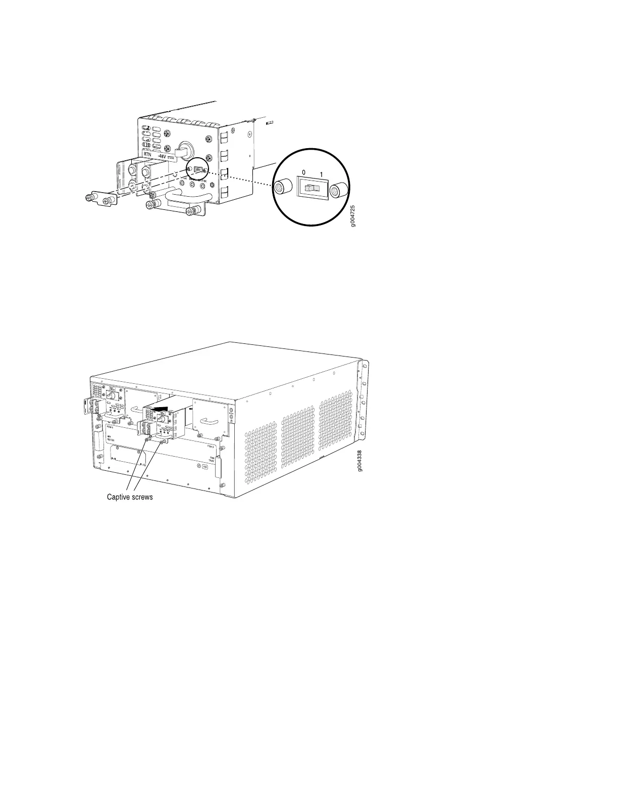 6. Tighten the captive screws on the lower edge of the power supply faceplate.