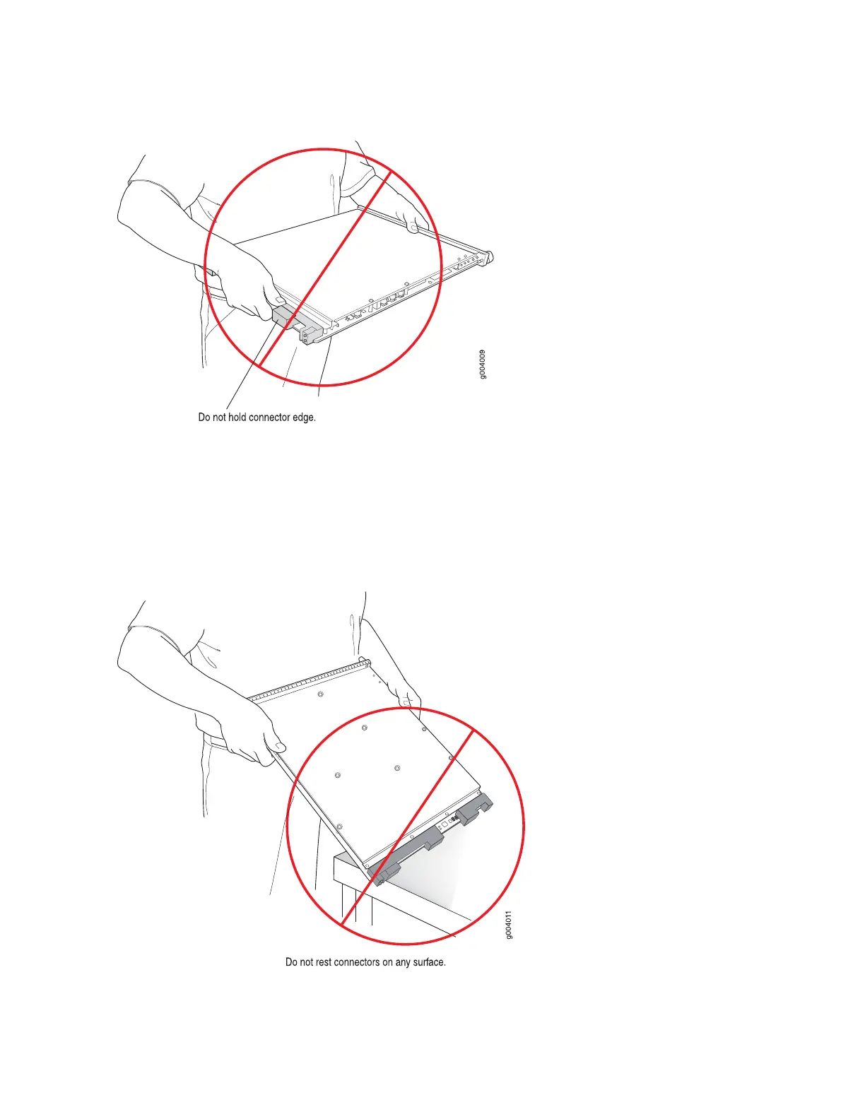 Do not rest any edge of a card directly against a hard surface (see Figure 111 on page 279).