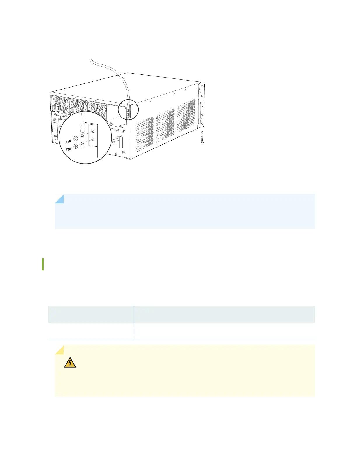 The grounding cable that you provide must meet the specifications in Table 23 on page 57.