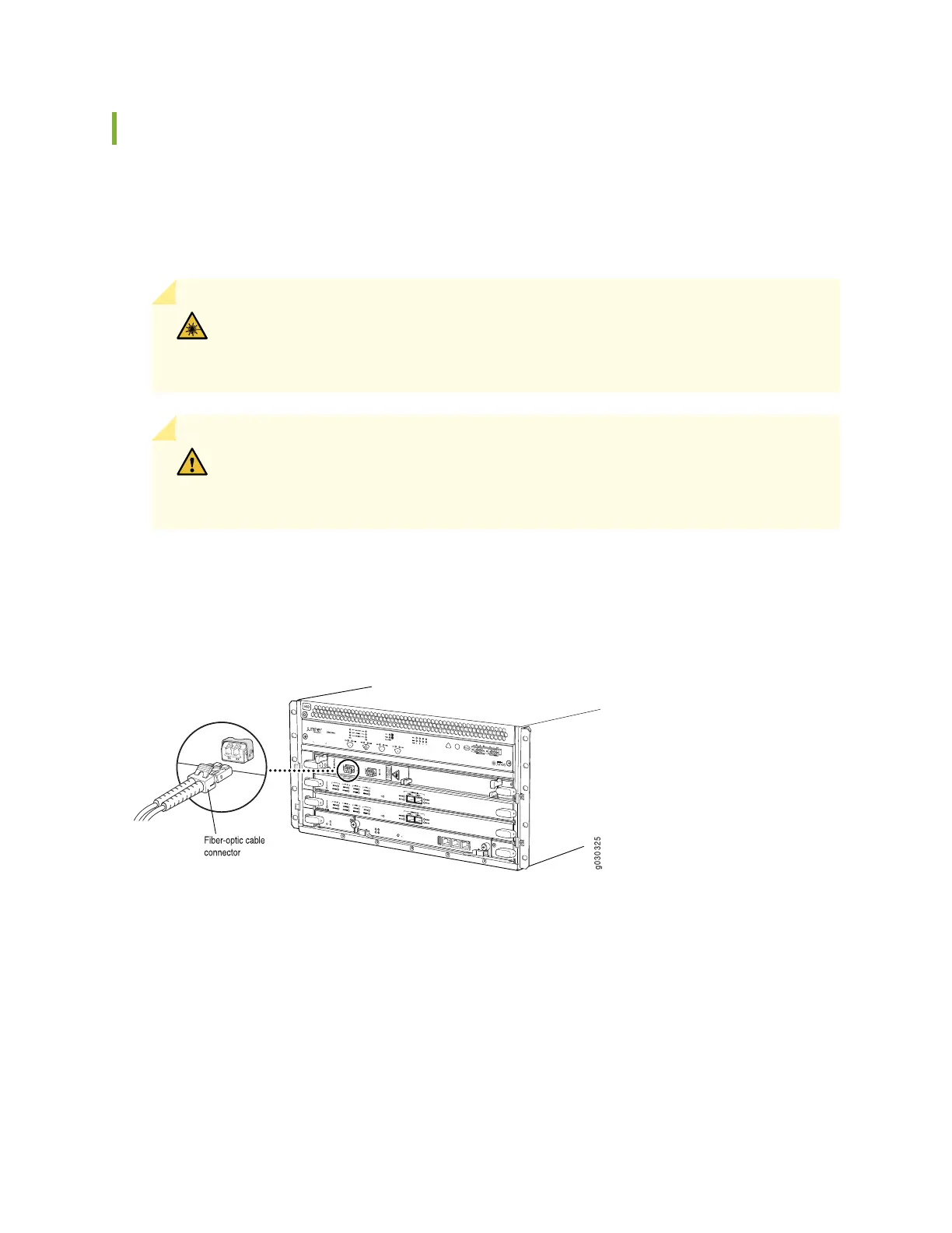 WARNING: Do not look directly into a fiber-optic transceiver or into the ends of