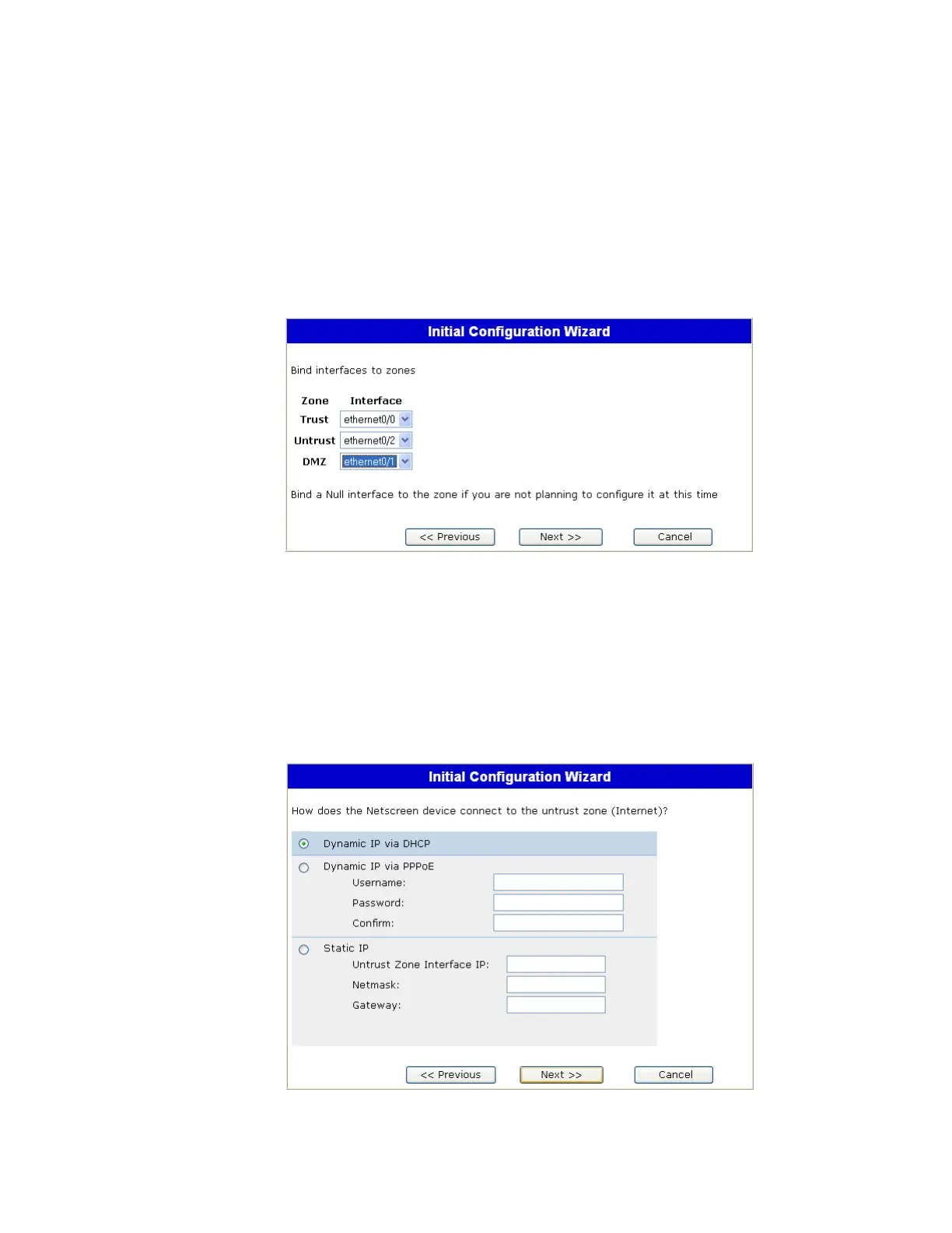 The Untrust zone interface can have a static IP address or a dynamic IP address