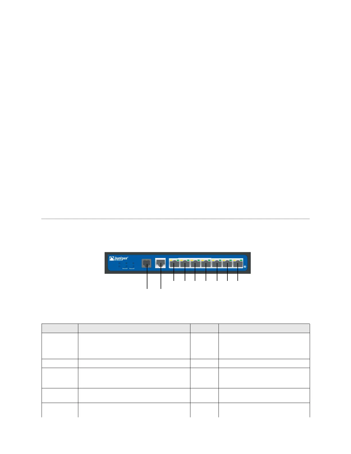 Table 1 shows the ports and power connectors on an SSG 5 device.