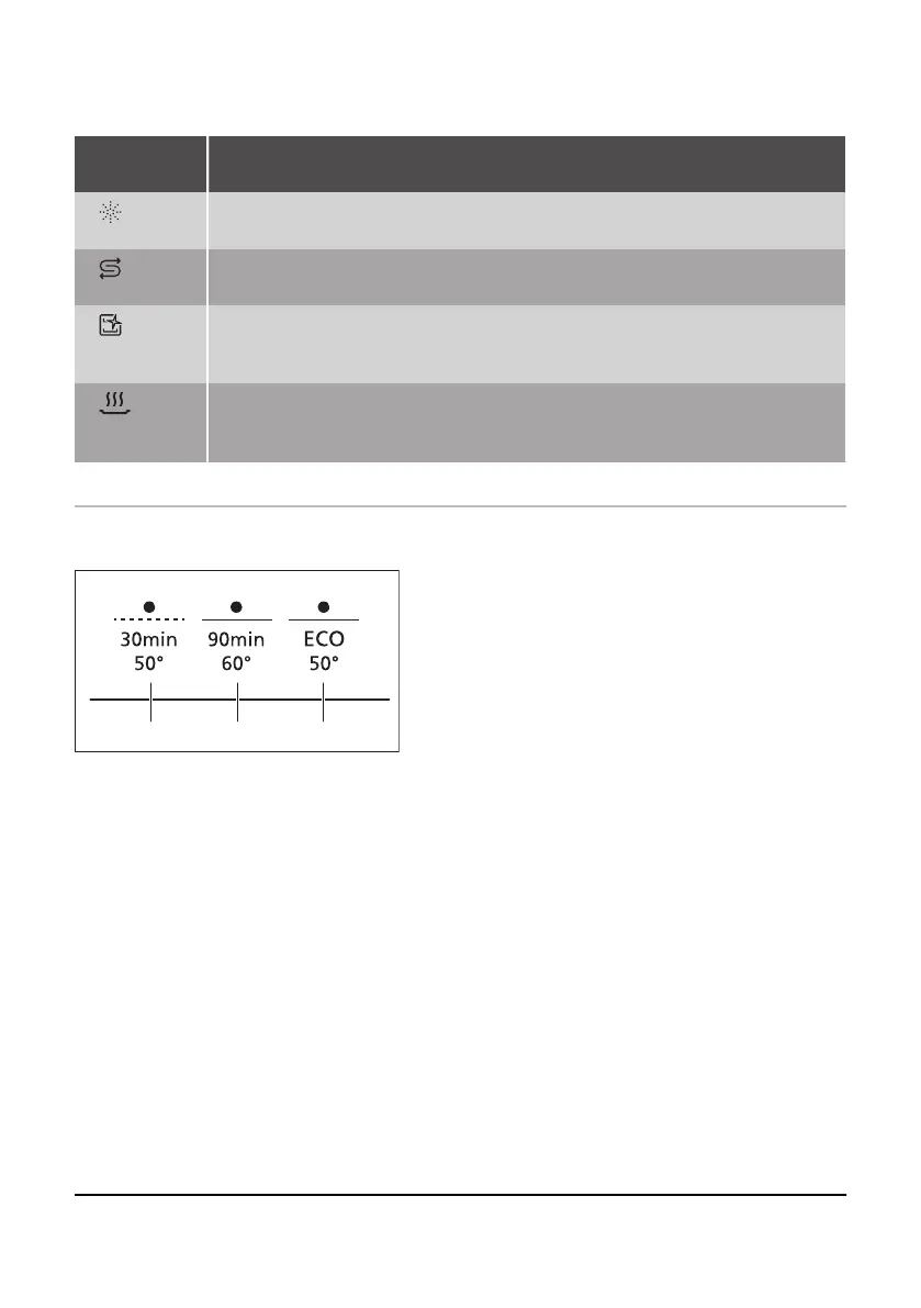 Glansmiddelindicatielampje. Dit is aan als het glansmiddeldoseerbakje bijge‐