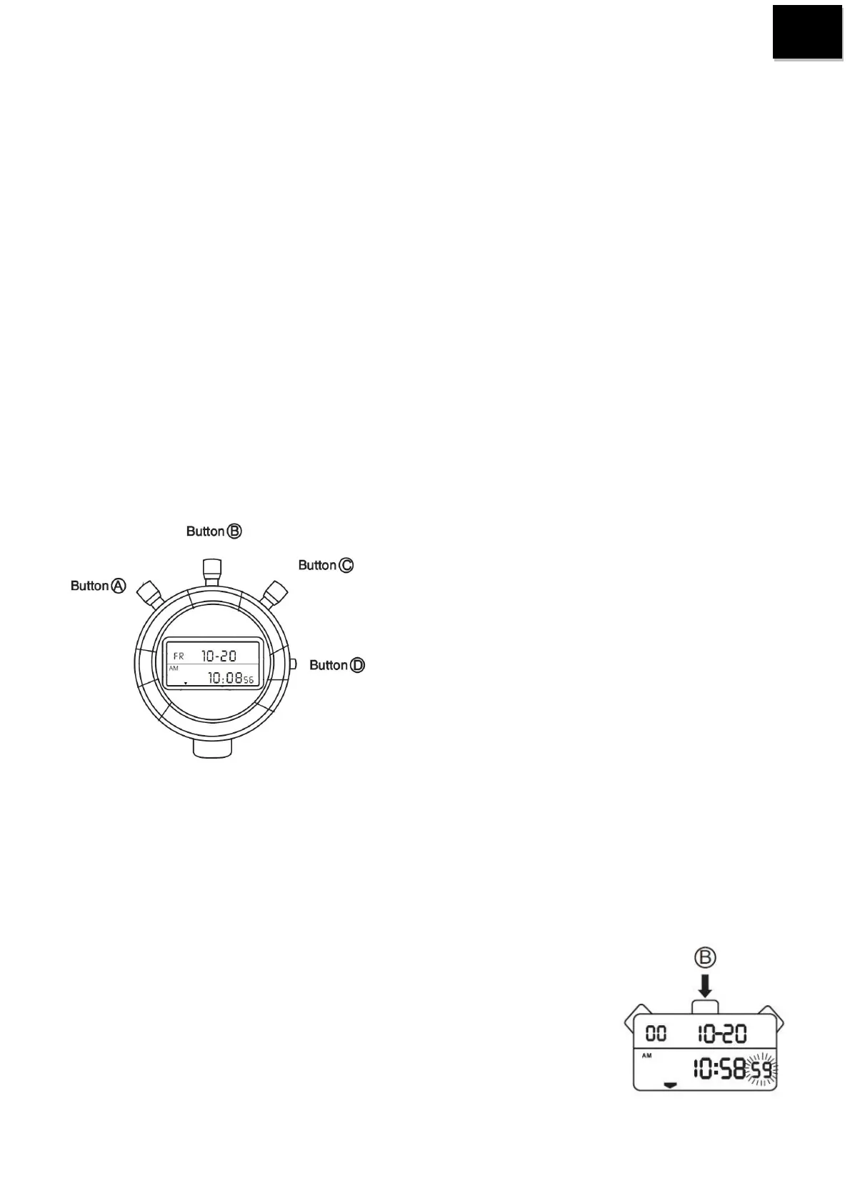 tlačítko C spouští a zastavuje stopky
