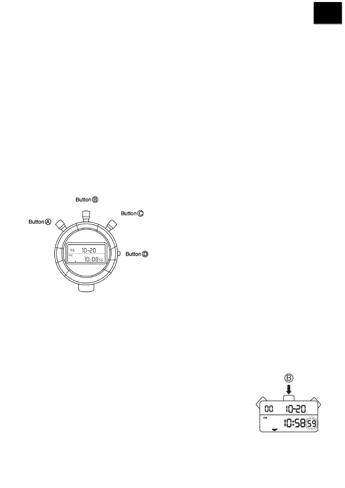 nastavujeme čas (sekundy, minúty a hodiny). Nastavenie vykonávame tlačidlom