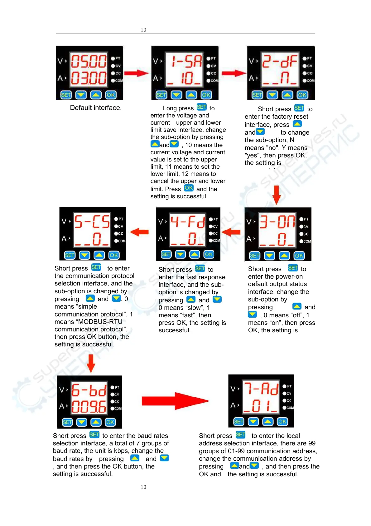Short press to enter the baud rates