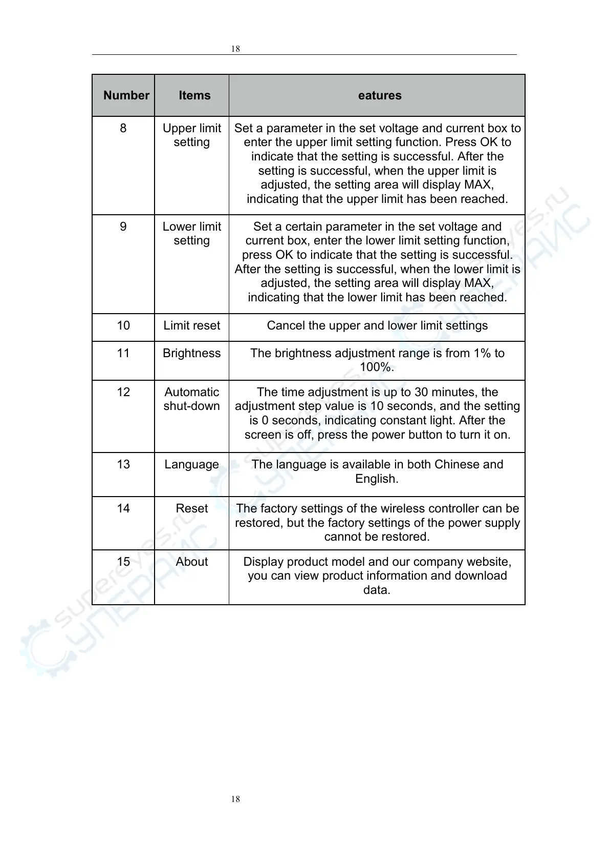 restored, but the factory settings of the power supply