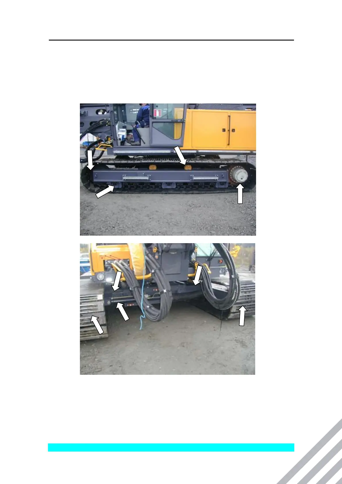 Check visually the carrier rollers, track rollers, track shoes and idler wheels for