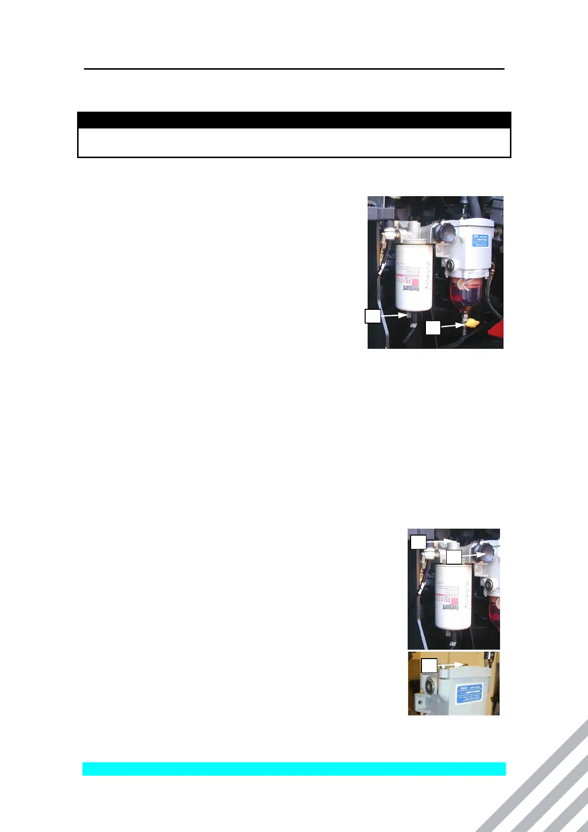 • De-air the water separator until clean fuel comes