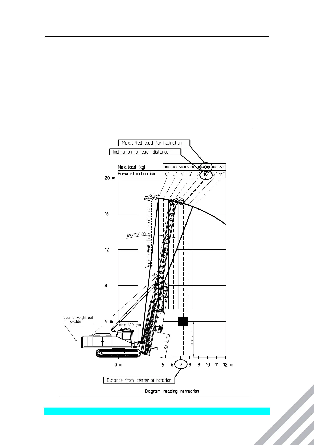 Diagram shows distance which can be reached for listed forward inclinations to lift