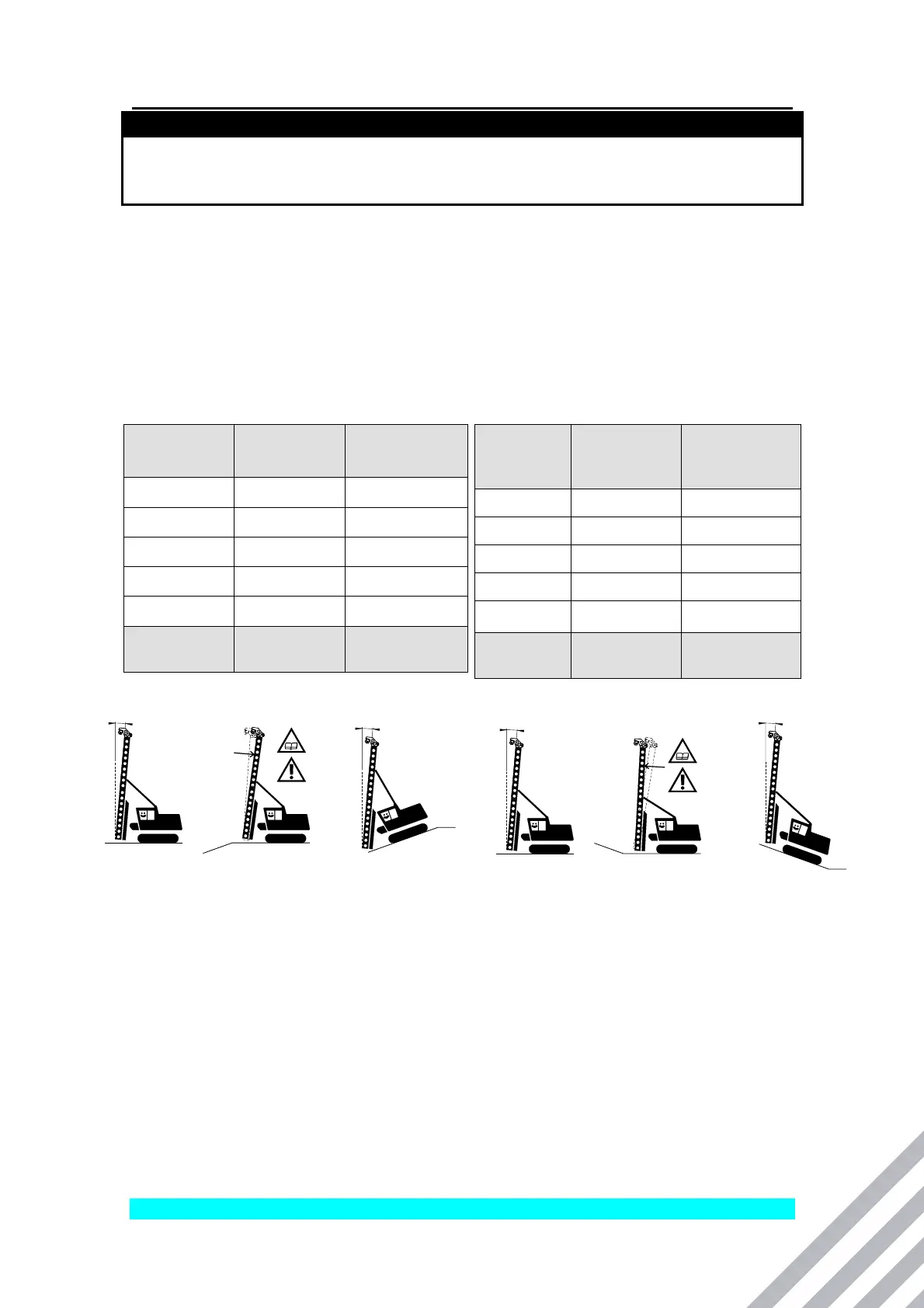 • If you drive to a 5° downward slope, you incline the leader 10° backwards before