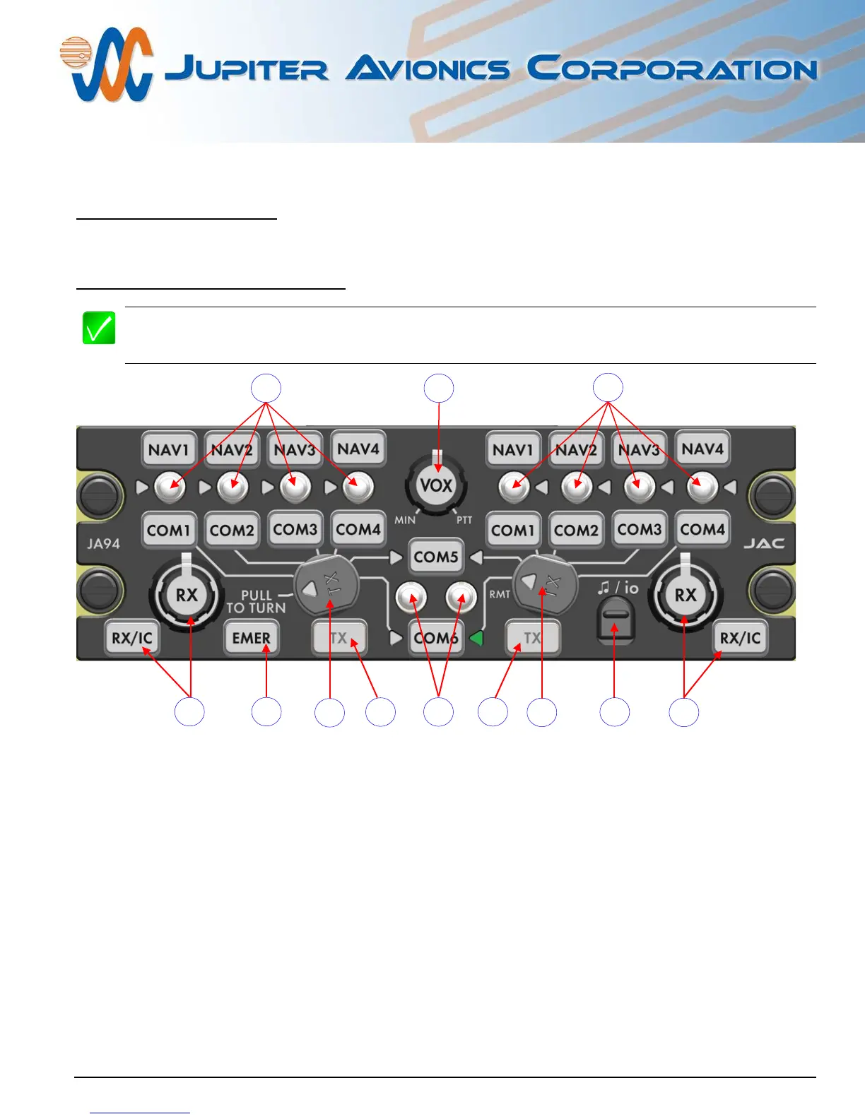 3. Left and Right User COM5/COM6 receive select switches, TX select annunciators and