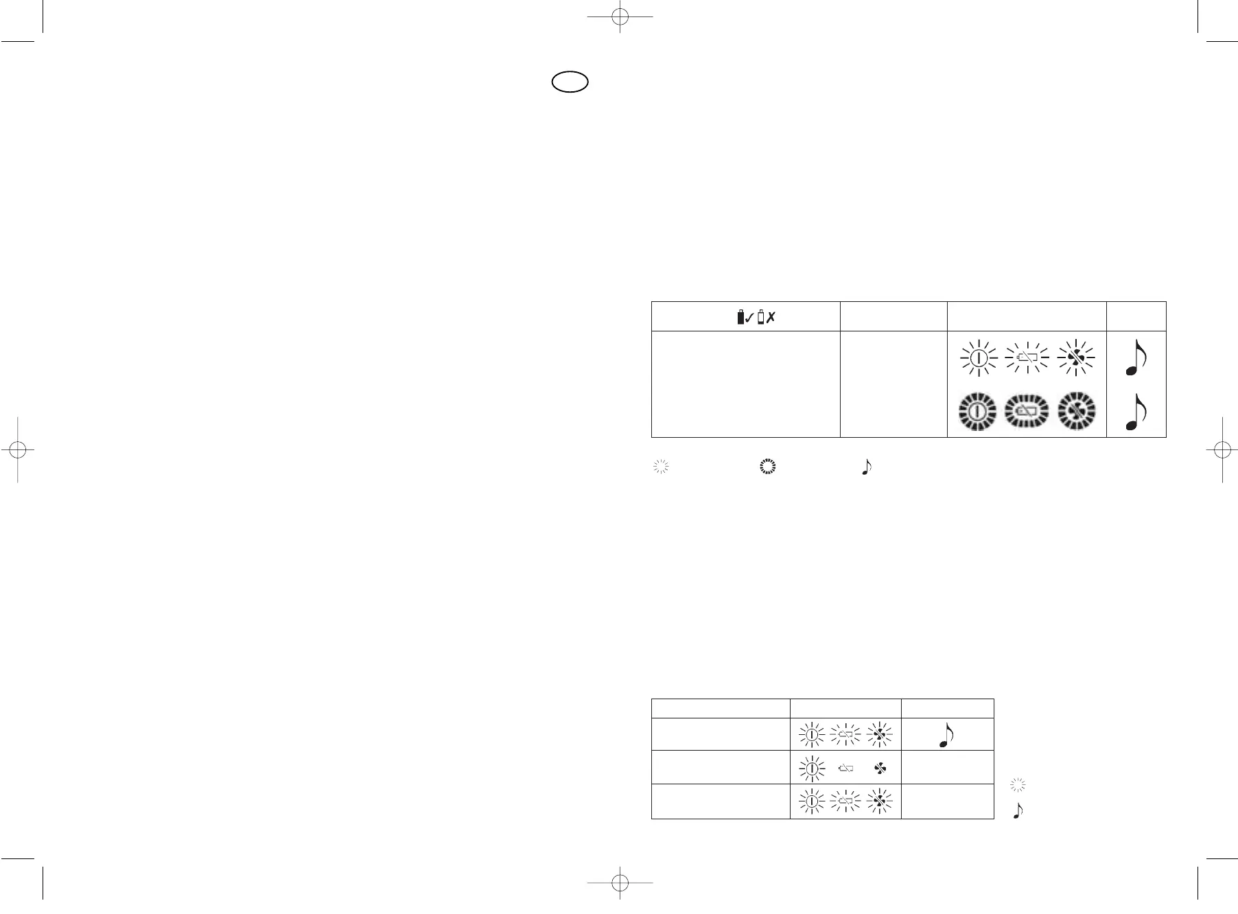 = Langsomt blink = Hurtigt blink = Et kort lydsignal