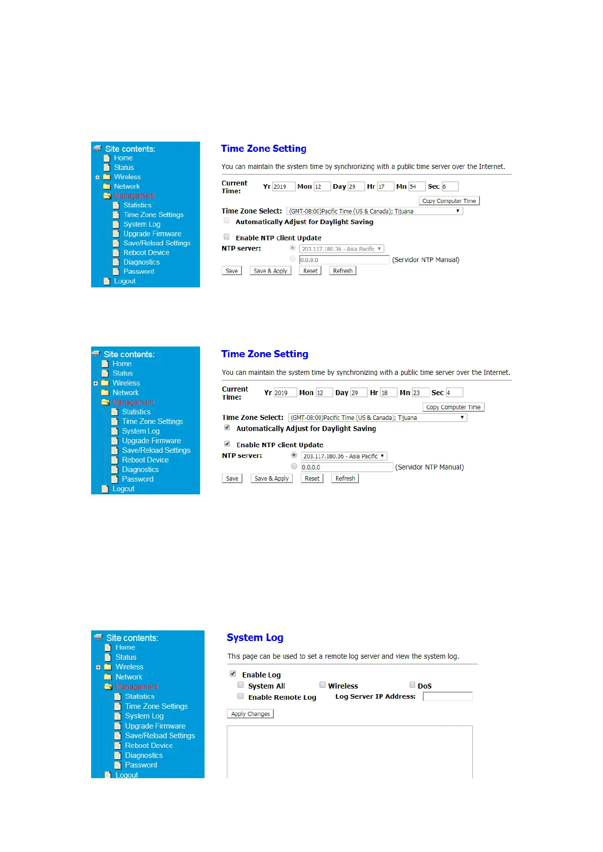 4.3.2 Enable NTP client Update-select stable NTP sever or add servidor NTP Manual